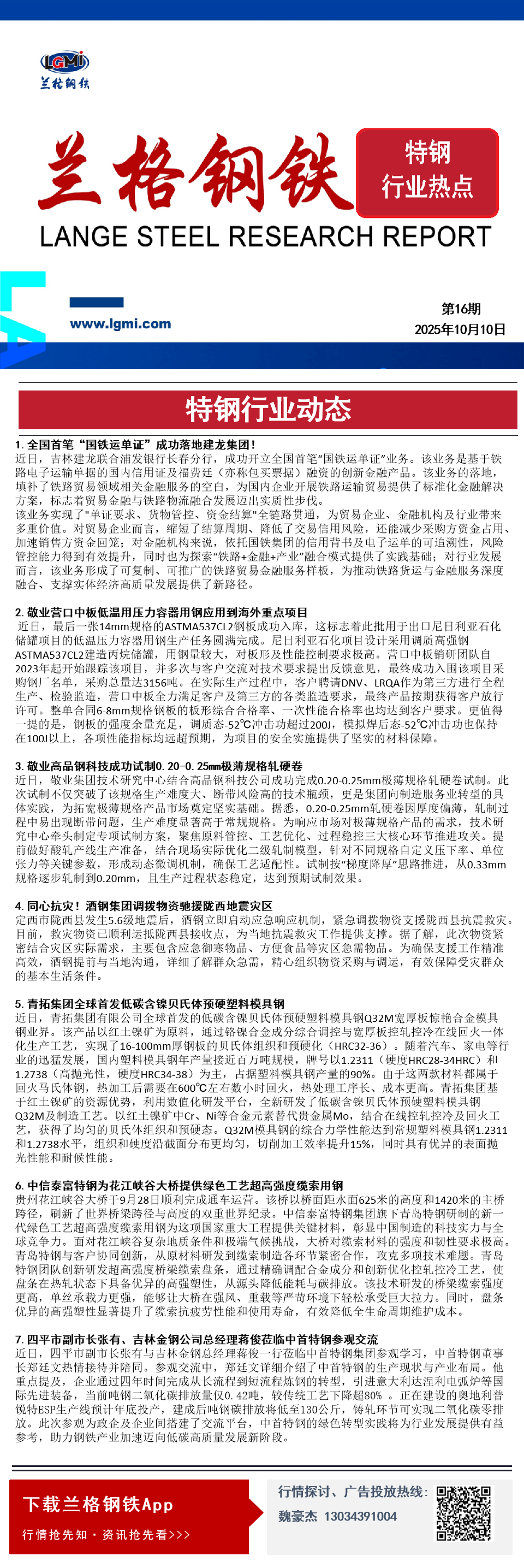 发表日期:2025/10/10 13:53:36 兰格钢铁-魏豪杰