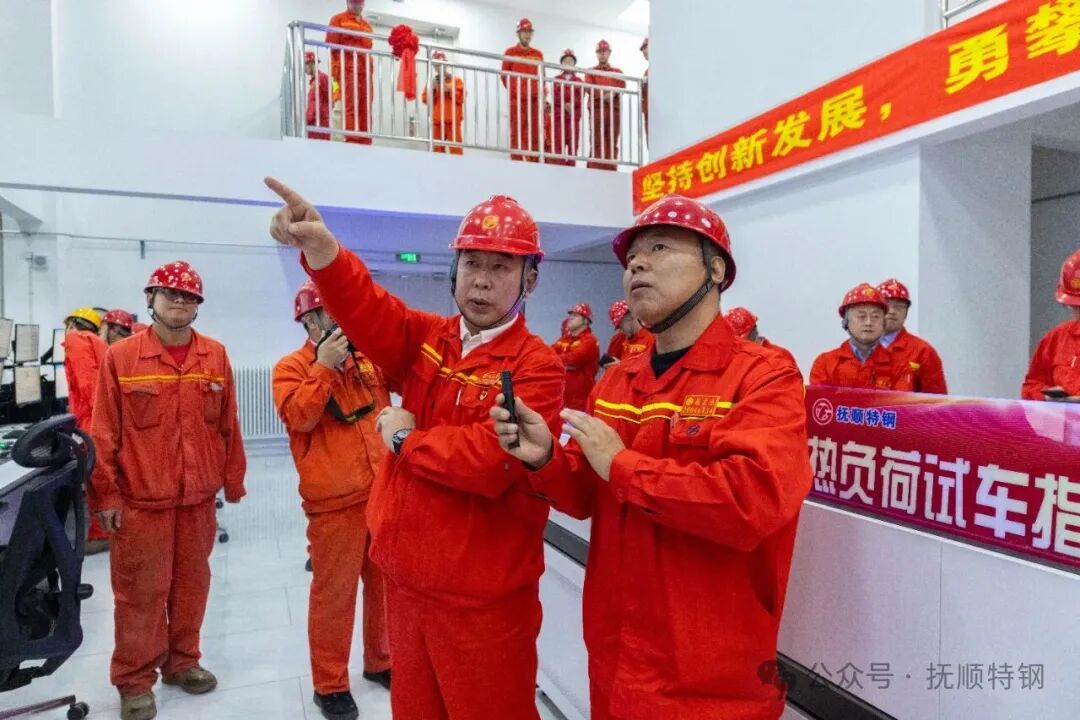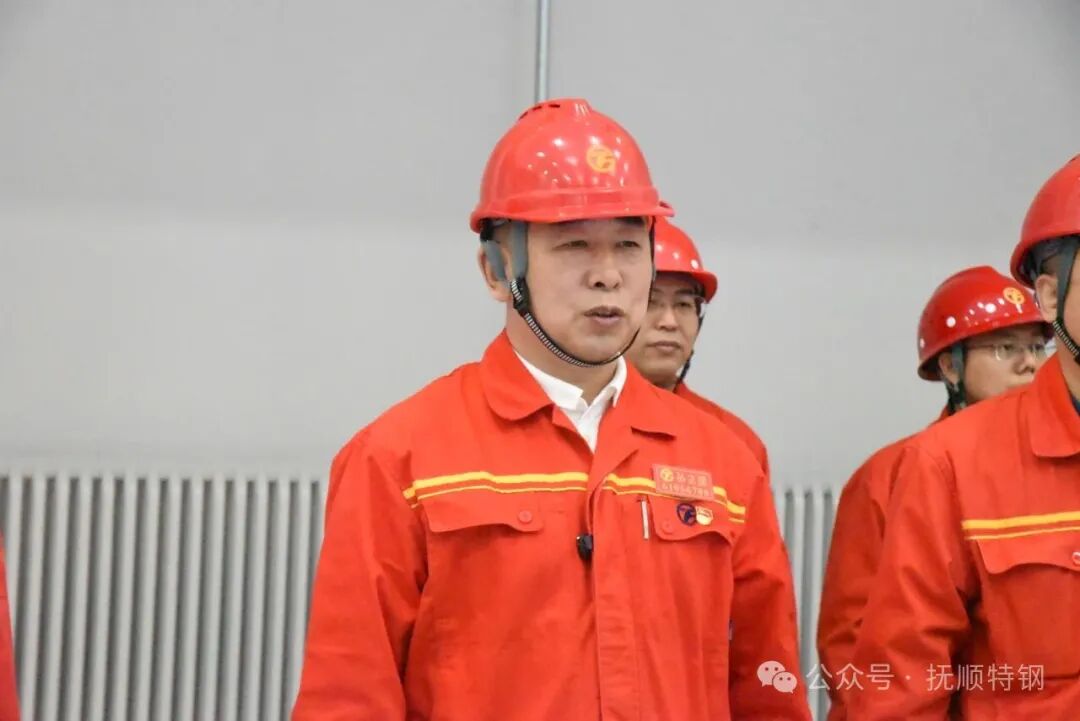 他说,就在刚才,我们共同见证了抚顺特钢发展史上一个里程碑式的时刻——国内首条智能化高合金板材生产线热负荷试车圆满成功!这不仅是一条生产线的成功,更是抚顺特钢积极响应“制造强国”战略,在中国特钢发展蓝图上挥就的浓重一笔!这条生产线的成功,标志着我们正式迈入了“智造”新时代。 它用“大数据”的智慧取代了传统的“人机对话”,用“集中控制”的精准重构了生产的全流程。从此,“无人化”制造从蓝图走进现实。这不仅仅是效率的跃升、品质的变革,更是我们面向未来竞争,构筑核心优势的坚实底座。我们攻克的不只是技术难关,更是传统生产模式的壁垒,为中国高合金板材的“高质量、高精度、高稳定性”树立了全新的行业标杆。