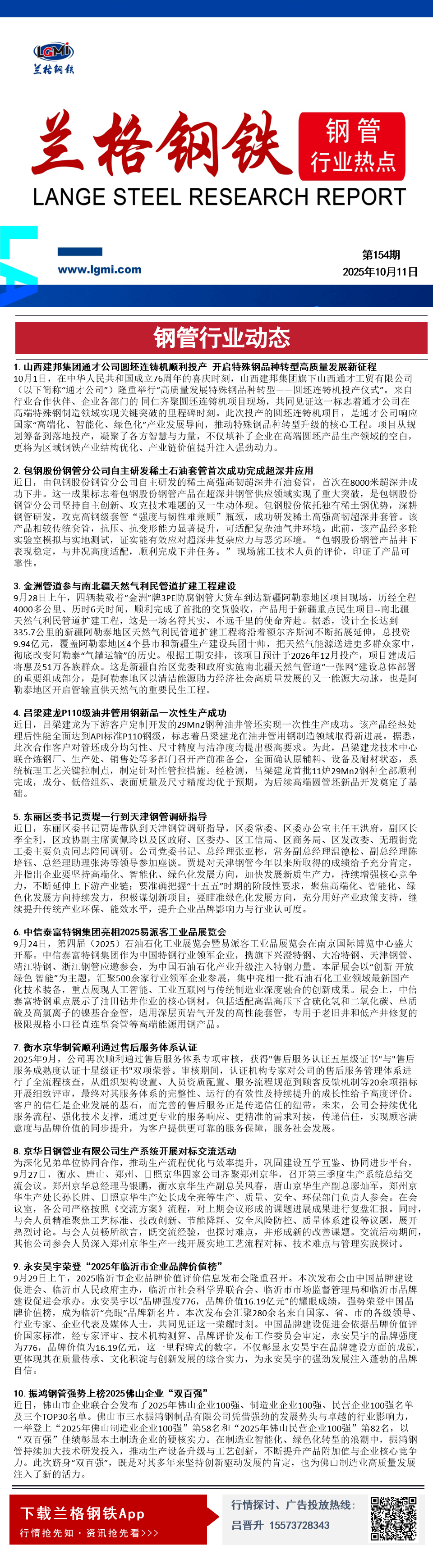 - 兰格钢铁华北建材周报(十月第一周)2025/10/11