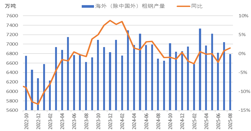 图3 海外(除中国外)月度粗钢产量情况