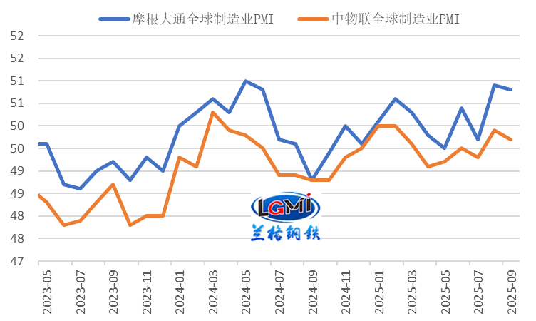 当前我国钢材出口仍保持价格优势,全球制造业指数再度回落,制造业外需景气度略有改善,但钢铁行业出口订单指数均在收缩区间运行,且全球粗钢产量有所回升,叠加贸易摩擦及相关税费增加仍将抑制钢材出口。在上年同期钢材出口基数继续增加且创历史次高水平(2024年10月钢材出口1118万吨)的情况下,2025年10月份我国钢材出口同比或面临增速放缓或回落压力。相关影响因素分析如下: