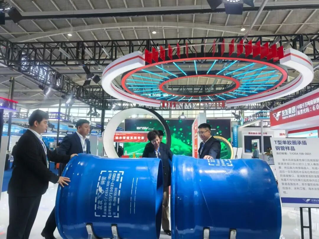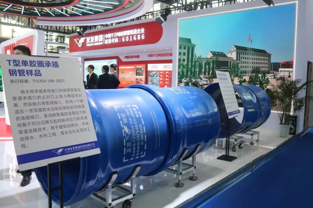 本次展会上,友发管道科技集中展示了其在输水管道领域的明星产品与技术成果。其中,承插柔性接口防腐钢管作为公司拳头产品,凭借连接稳定性强、密封性优、防震抗灾性能突出等优势,吸引了大量东北地区水行政主管部门、市政建设单位及项目方代表驻足咨询——该产品不仅能适配东北严寒气候下的管道工程需求,还可大幅降低安装成本、提升施工效率,此前已通过中国钢结构协会团体标准认证(《给水排水用承插柔性及搭接焊接口防腐钢管》),技术水平处于国际领先。