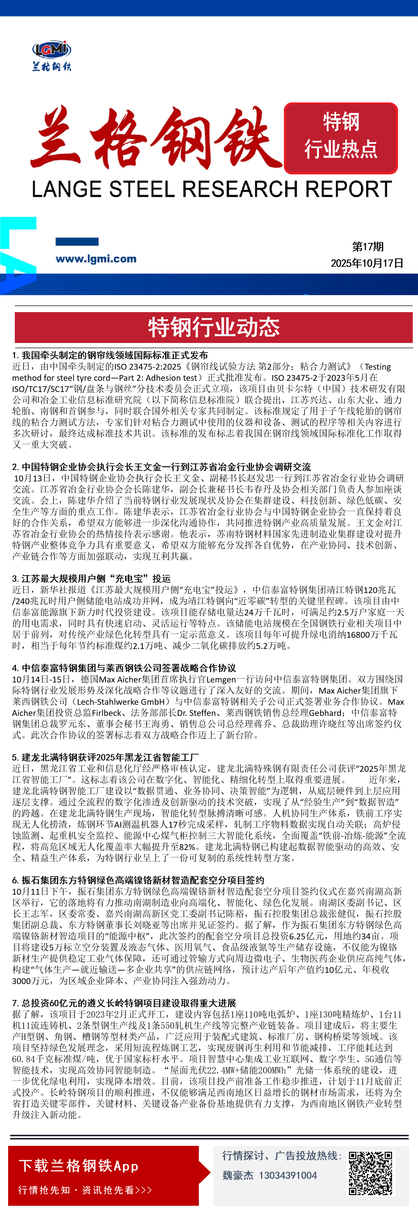 发表日期:2025/10/17 15:27:55 兰格钢铁-魏豪杰