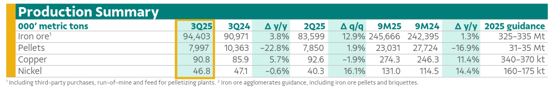 - 淡水河谷2025年第三季度产销量报告2025/10/22