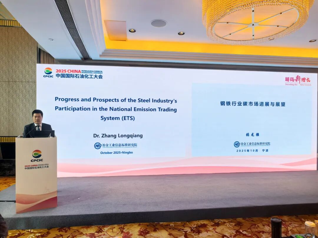 冶金工业信息标准研究院(以下简称:信息标准院)党委书记、院长张龙强应邀出席石化化工行业低碳座谈会,并作《钢铁行业碳市场进展和展望》主旨演讲。