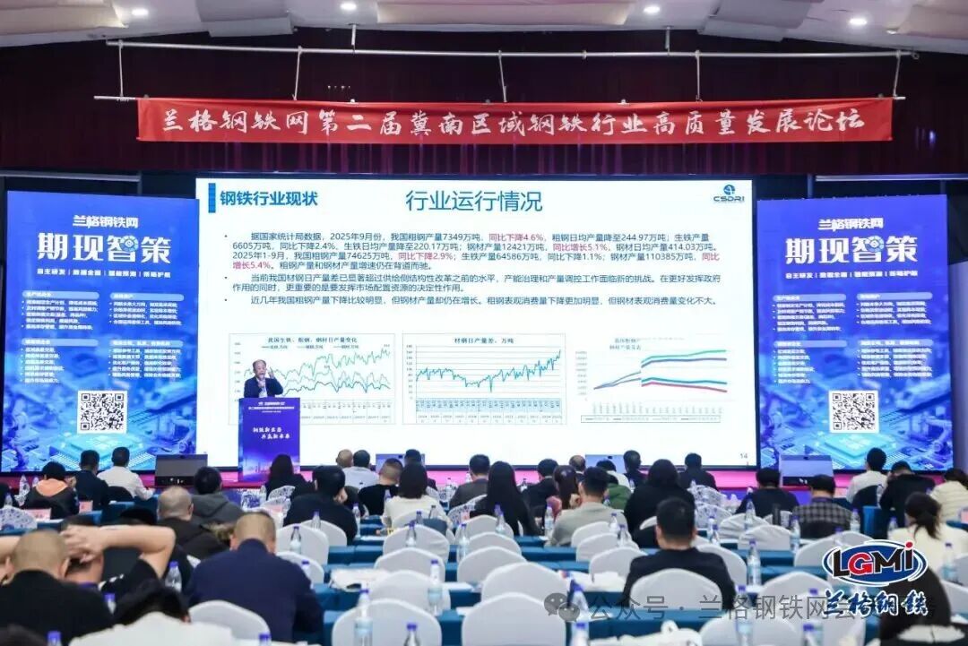 论坛期间,兰格集团副总裁徐神宝、敬业集团销售总公司副总经理曹晓光、河北省金属材料流通协会副会长兼秘书长宗树明等重要嘉宾分别发表致辞。在主题演讲环节,冶金工业经济发展研究中心原副主任郑玉春、世界金属导报副社长于治民、兰格钢铁网首席分析师马力等专家,围绕"十五五"政策规划、重点钢材品种需求前景、四季度行业形势等热点话题进行了深入分析与分享。