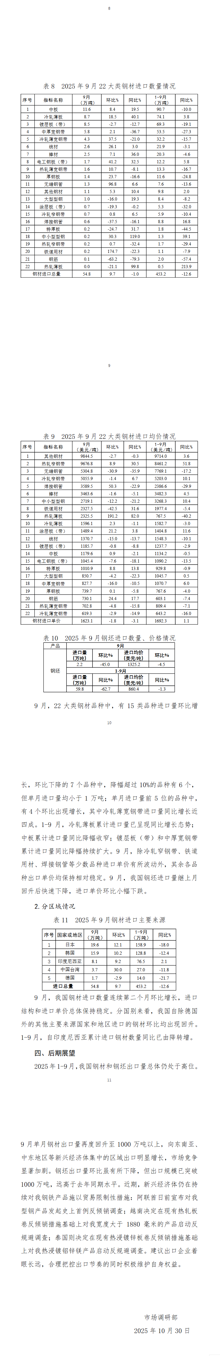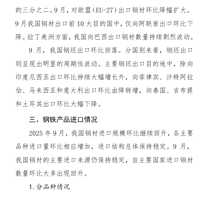 - 中钢协:9月钢铁产品进出口月报2025/10/31