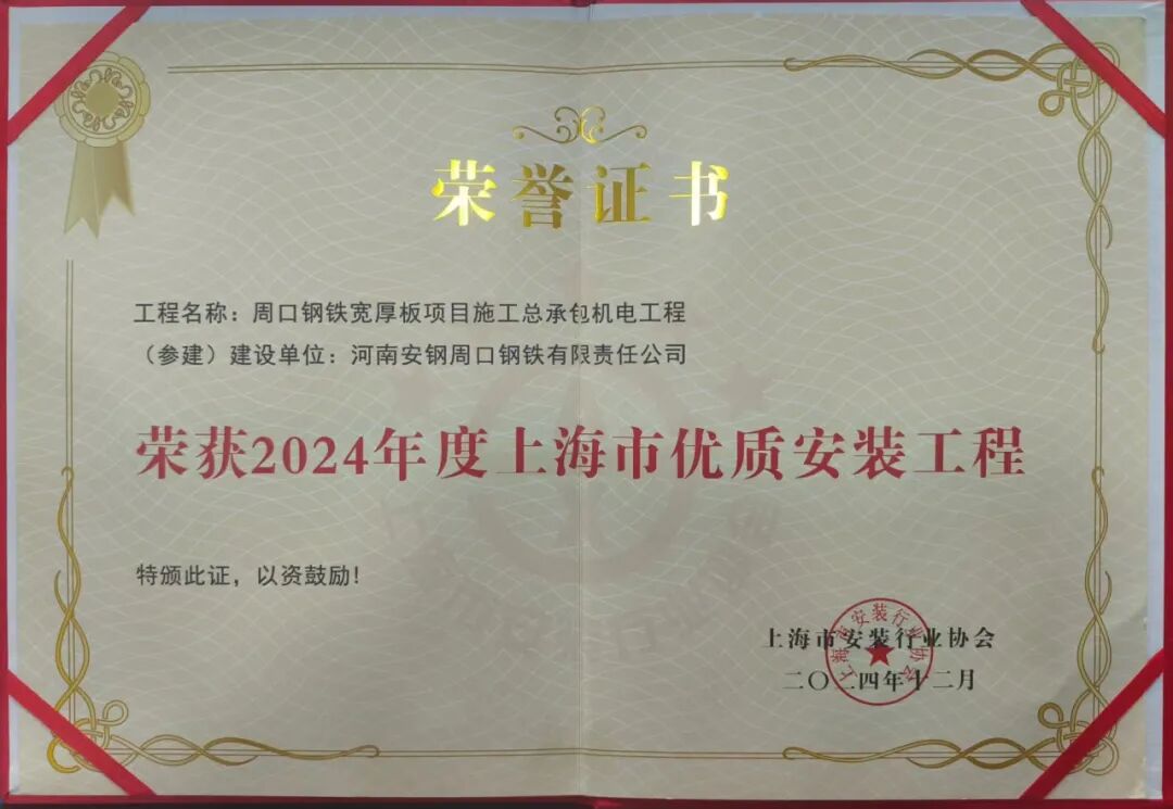 - 周口基地宽厚板生产线机电工程荣膺上海市优质安装工程奖2025/10/31