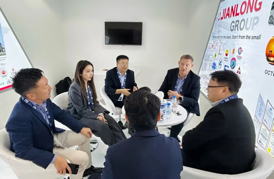 展会期间,伊藤忠丸红(Itochu Marubeni)、国际发展公司(International Development Company)、安赛乐米塔尔(ArcelorMittal)、中国石油工程建设公司(CPECC)、NMDC能源集团(NMDC Energy)、泰克尼蒙特工程公司(TECNIMONT)等多家重要客户及行业伙伴到访建龙集团展位,围绕高端无缝钢管在能源领域的创新应用、锅炉装备海外项目合作等关键议题进行了深入探讨,达成了多项合作共识,为建龙集团进一步拓展国际市场奠定了坚实基础。