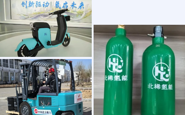 “喝氢吐水”的氢能电动两轮车,是北方稀土垂直氢能赛道全力打造“北稀氢能”系列产品的重要一员。不同于工业氢能产品,电动车更容易帮助人们转变“氢能难以融入日常生活”,形成“绿色氢能安全可靠、方便快捷”的新生活模式。凭借25年技术积累,贮氢公司精准瞄准氢能产业蓝海,氢能产品多点开花,已研制出30余款固态储氢材料,其中12款实现大规模市场化应用,与欧盟、韩国、日本等15家海外企业建立合作。在商用车领域,贮氢公司与国内知名车企合作开发49吨氢燃料重卡和6吨固态储氢装载机,突破固气耦合技术难点;研发的叉车用固态储氢装置,采用整体换装模式,不受加氢时间与场所限制,可连续运行8小时。