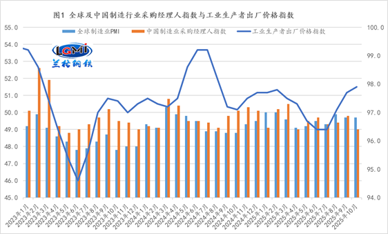 2025年10月份,由于重点行业产能治理持续推进和消费潜力有序释放等因素的影响,全国PPI环比年内首次上涨,同比依然下降2.1%,但降幅比上月收窄0.2个百分点,连续第3个月收窄(详见图1)。当前国内市场引导的需求收缩继续发展,要显著加大宏观经济政策逆周期调节力度,从而增强制造用钢需求的持续释放强度。