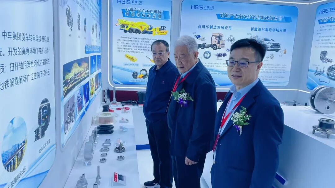 开幕式结束后,姜维、钱刚、王文金等领导嘉宾到我公司展位参观,李玉田向各位嘉宾介绍济源钢铁特殊钢大圆坯等主线产品,以及精品线材、银亮材、热处理件、电渣钢、无缝钢管、锻件等深加工产品。这些产品广泛应用于汽车、工程机械、能源风电、铁路及轨道交通、桥梁缆索五大关键领域。