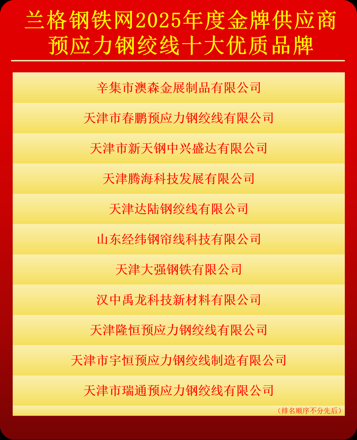 - 兰格钢铁网2025年度金牌供应商预应力钢绞线十大优质品牌2025/11/17