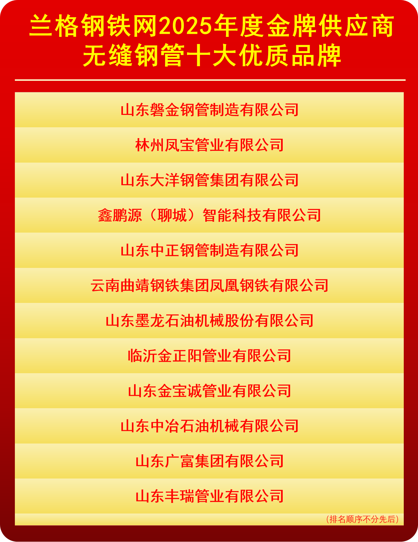 热烈祝贺!兰格钢铁网2025年度金牌供应商无缝钢管十大优质品牌