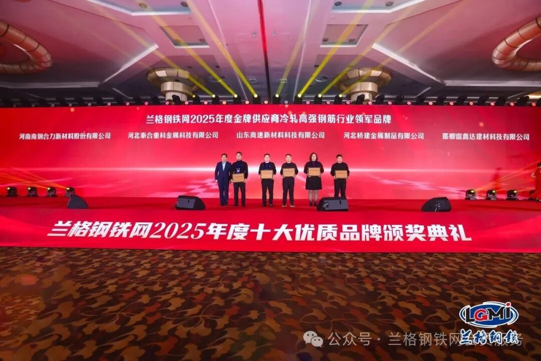 河南南钢合力新材料股份有限公司摘得“兰格钢铁网2025年度金牌供应商冷轧高强钢筋行业领军品牌”。