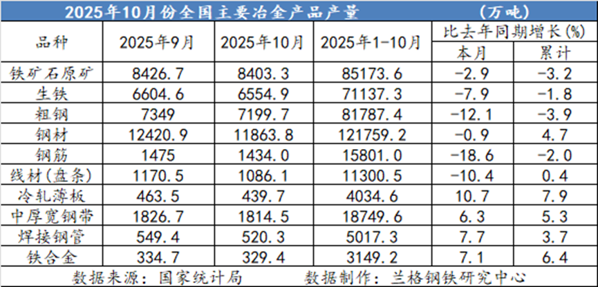 兰格追踪:2025年1-10月全国主要冶金产品产量