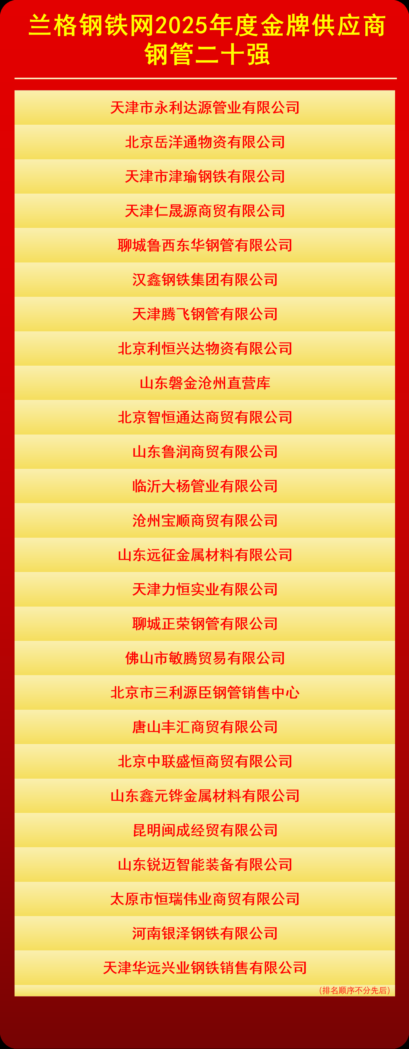 - 兰格钢铁网2025年度金牌供应商钢管二十强2025/11/18