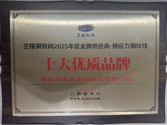 - 辛集市澳森特钢集团有限公司荣获兰格钢铁网2025年度金牌供应商预应力钢绞线十大优质品牌2025/11/21