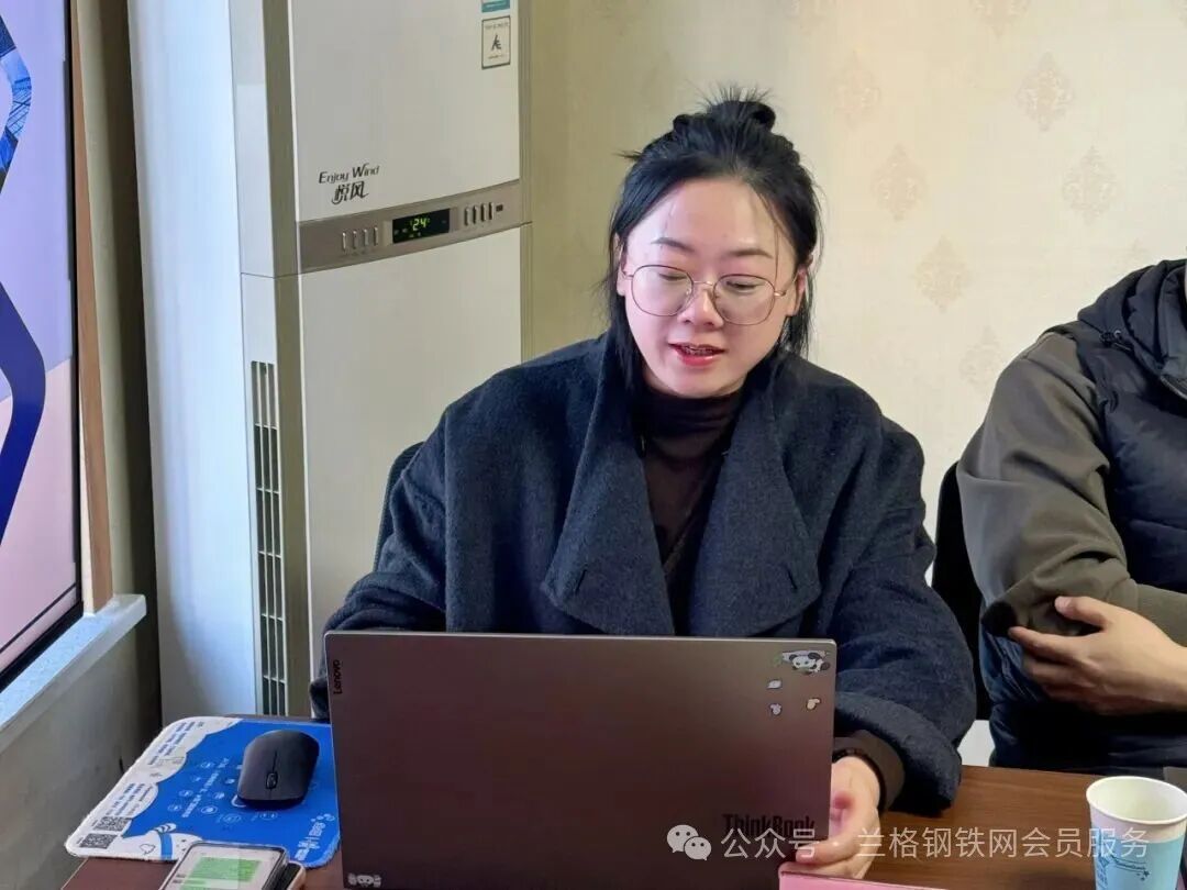 随后,兰格钢铁网河南办事处负责人魏梅向参会企业介绍了兰格钢铁手机App的操作技巧,详细演示了各项实用功能。她还就兰格钢铁网的三大业务板块——信息服务、云商平台和数科系统进行了全面介绍,并分享了兰格年终优惠活动方案,为会员企业提供了更多增值服务选择。此外,她照例向每位参会代表赠送了《兰格钢铁·河南优质企业特刊》,为参会企业提供了有价值的行业参考资料。