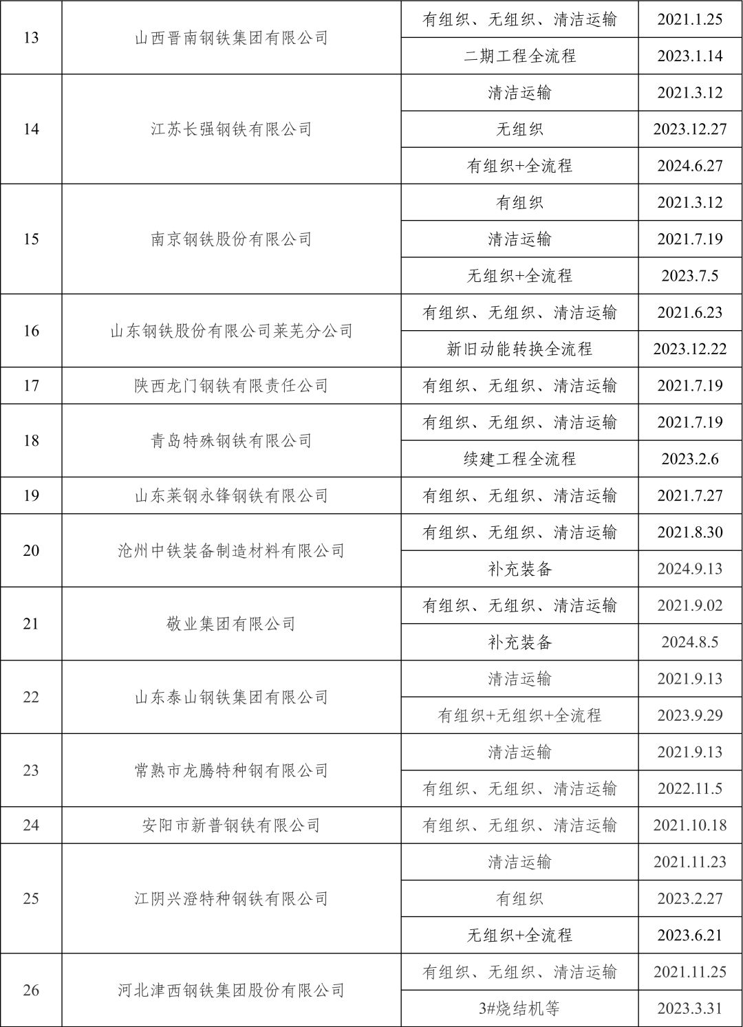 自2020年8月起,中国钢铁工业协会开展了钢铁企业超低排放改造和评估监测进展情况公示工作。截至目前,已有226家企业在钢协网站进行公示。已公示企业名单汇总及各企业公示内容整理如下: