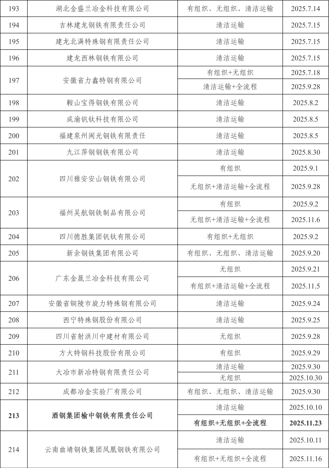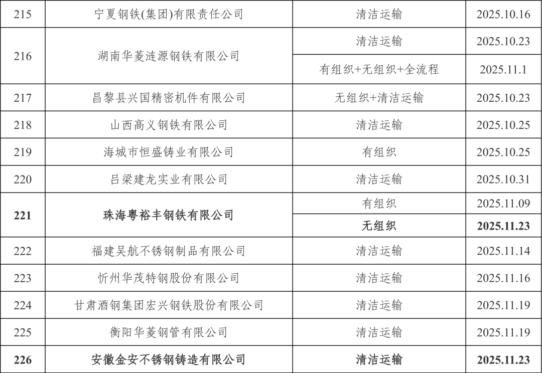 - 226家钢企完成超低排放改造公示!2025/11/26