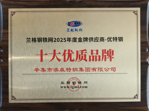 同期,“2025年度特钢与金属制品产业链高质量发展论坛”同步举办,论坛以“破内卷促转型攻高端”为核心议题,共探行业高质量发展路径。在备受瞩目的金牌供应商颁奖典礼上,辛集市澳森特钢集团有限公司凭借在优特钢领域的卓越实力与突出表现,成功斩获“兰格钢铁网2025年度金牌供应商优特钢十大优质品牌”荣誉称号,彰显了行业对其产品品质、创新能力与发展潜力的高度认可。