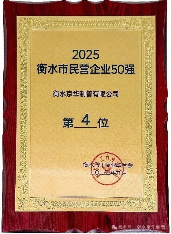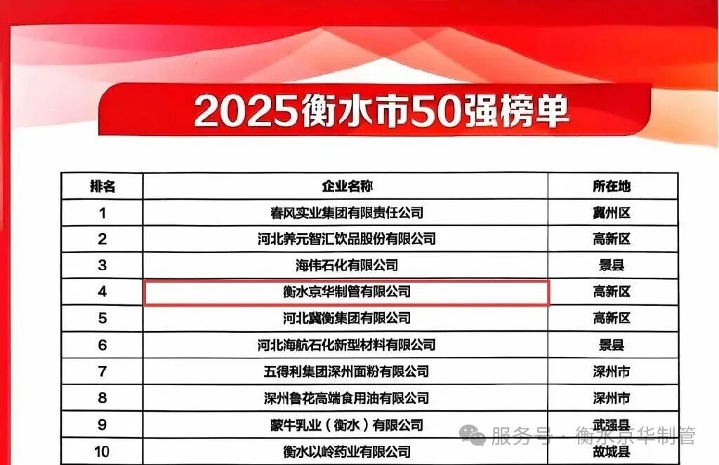 “以硬核实力 书写发展答卷”衡水京华制管荣登2025衡水民营企业50强第四位