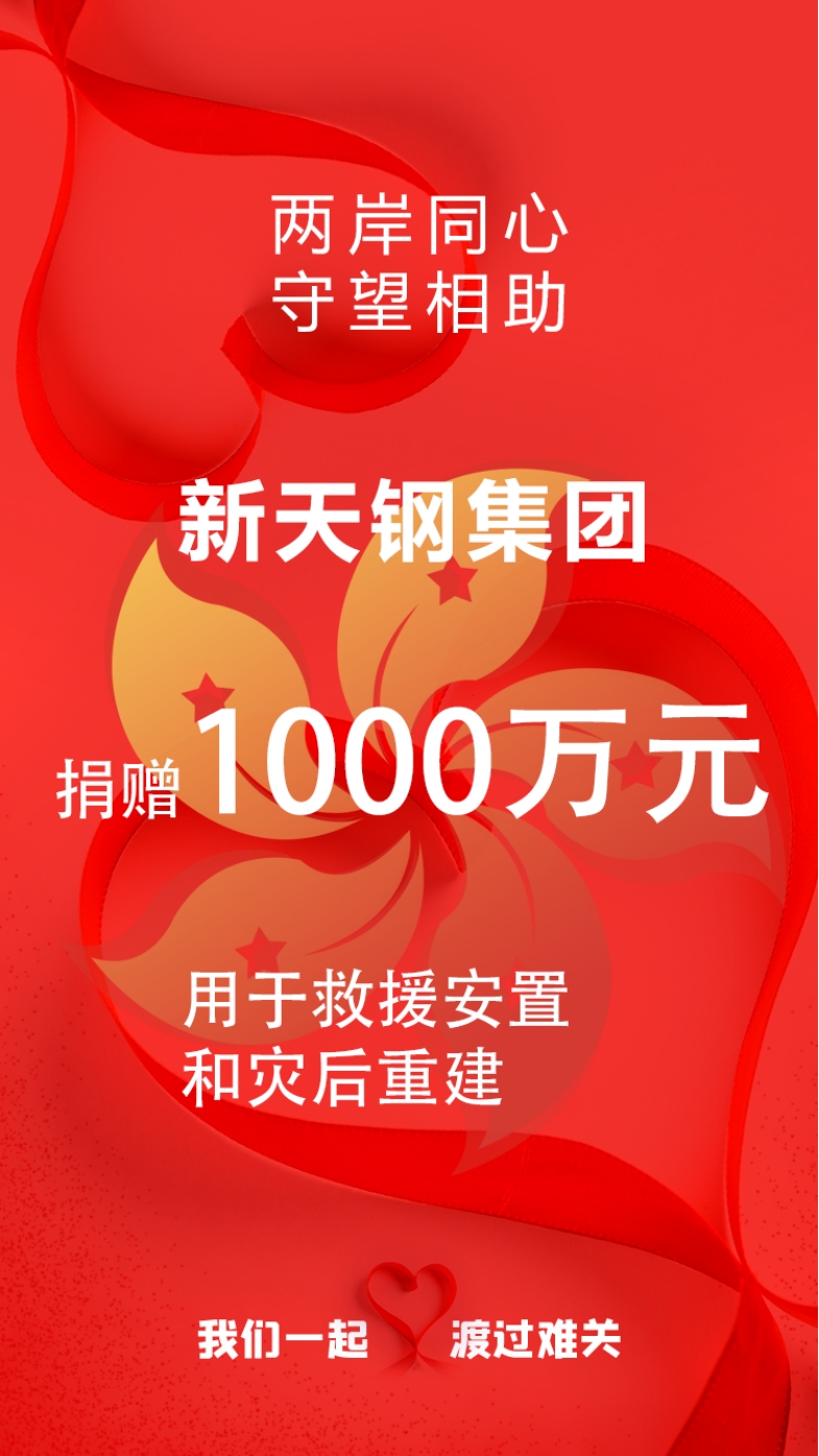 两岸同心,守望相助。新天钢将与香港社会各界携手同行,尽最大努力帮助受灾同胞渡过难关、重建家园。