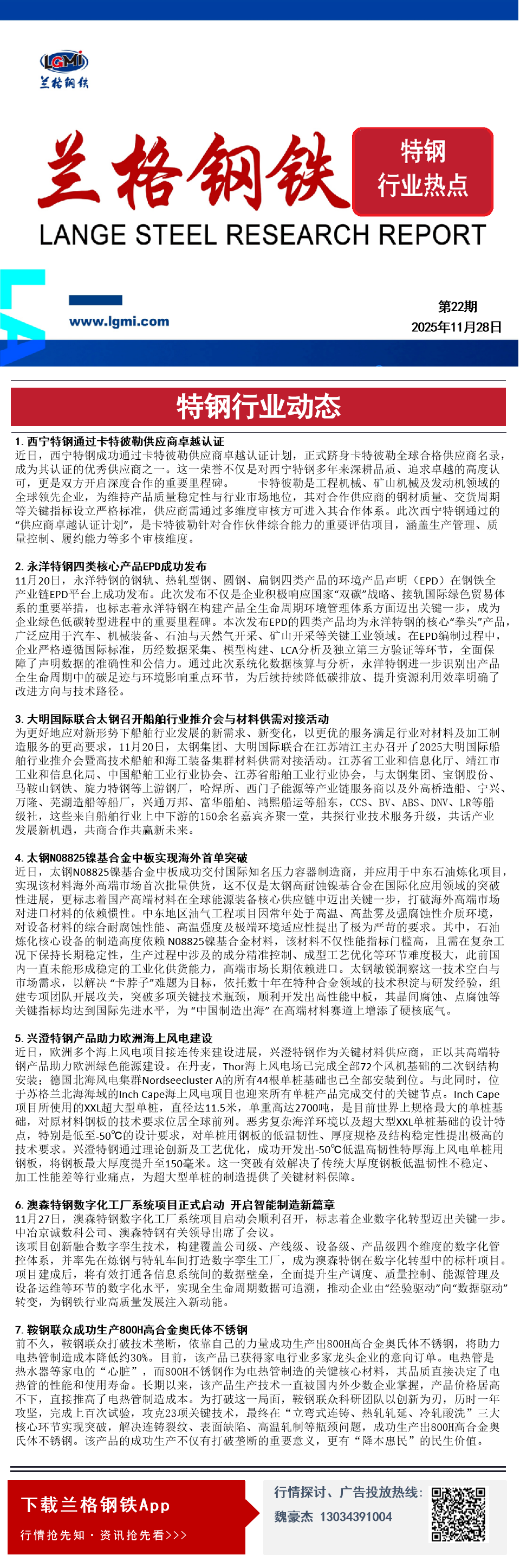 发表日期:2025/12/5 13:30:21 兰格钢铁-魏豪杰