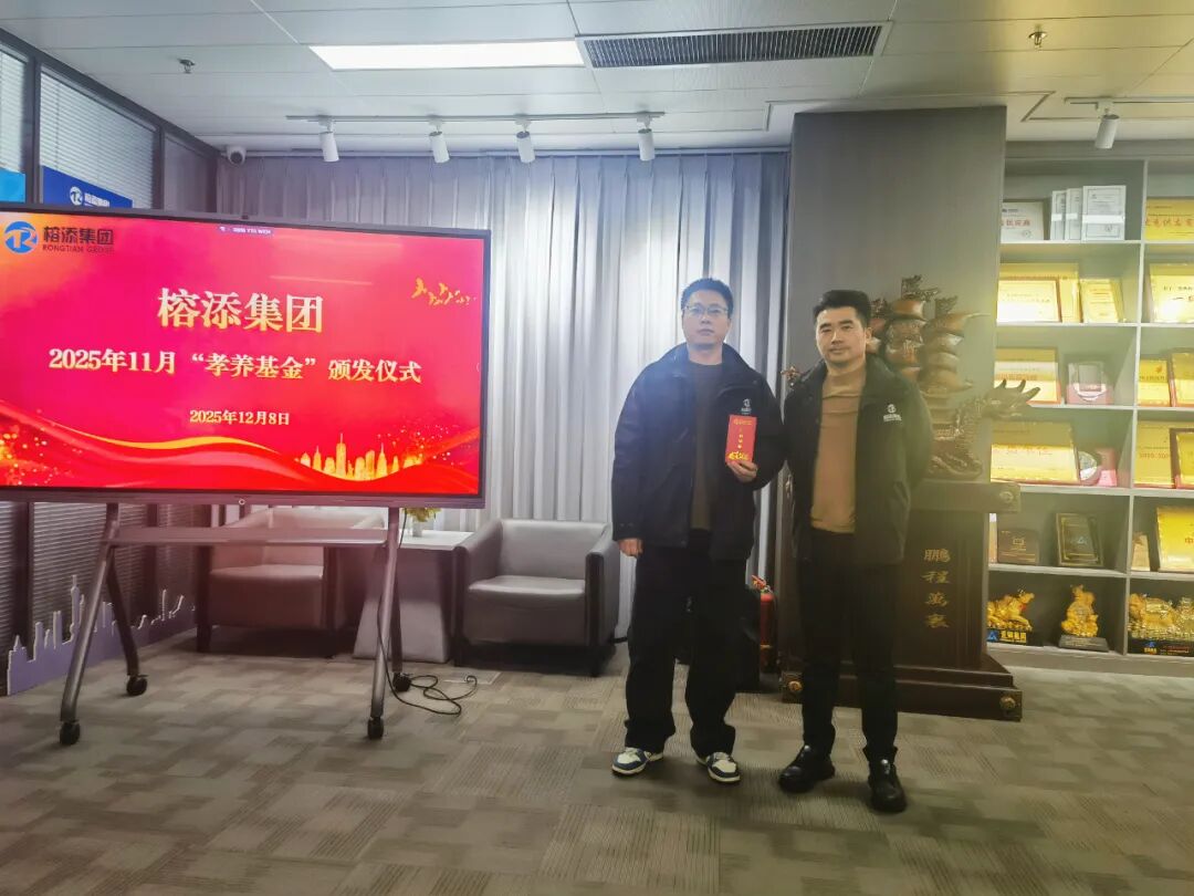 作为一项长期坚持的企业文化建设工作,榕添集团每月都会为“孝养之星”颁发现金红包,并为员工在父母生日当天提供带薪孝养假,我们相信有了这样持续不断地文化氛围影响,一定能够不断加强员工对孝亲敬老思想的认知,让孝养文化真正融入到企业发展的血脉中,成为榕添集团独特的企业文化底色。期待更多榕添人能够用实际行动诠释孝的真谛,让孝行天下的理念在榕添落地生根、开花结果。