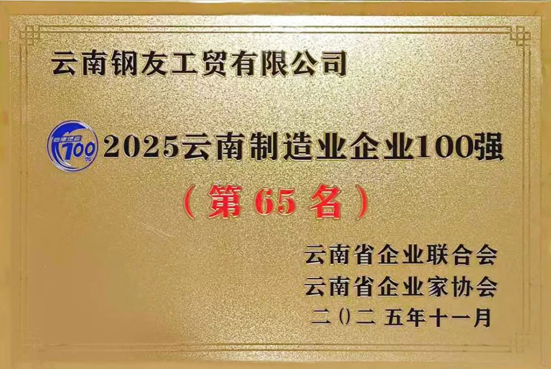 - 云南钢友工贸连续12年荣登“云南省制造业百强榜” 坚韧与发展铸就辉煌2025/12/8