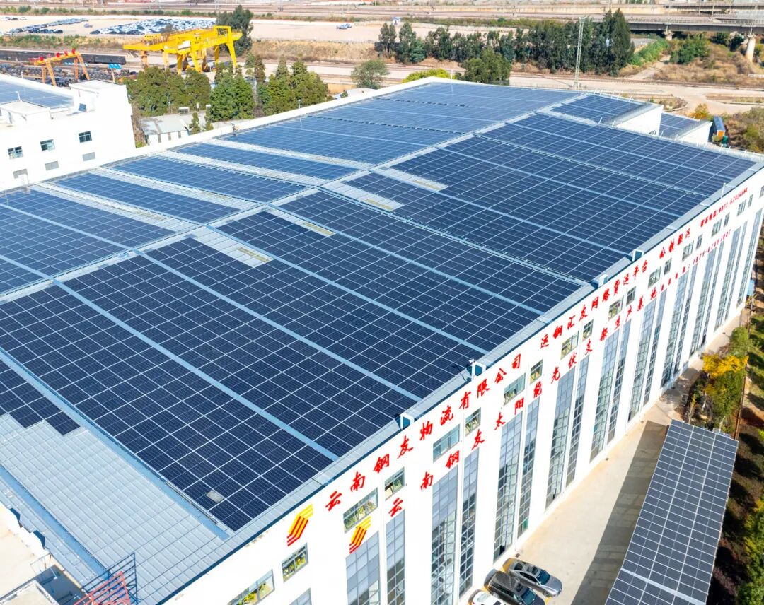 云南钢友自建屋顶铺设发电板,年发电量可达700万度。
