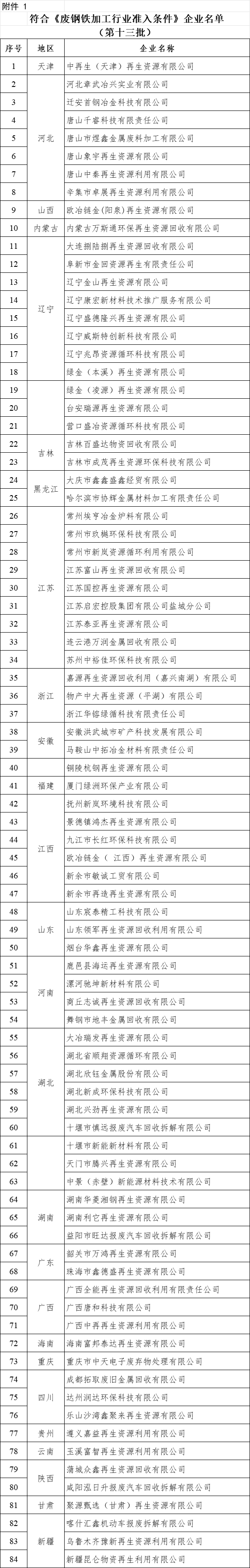 附件:1.符合《废钢铁加工行业准入条件》企业名单(第十三批)