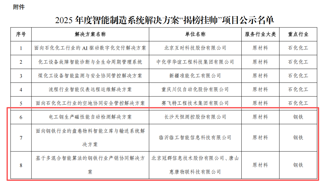 - 涉及多个钢铁项目!工信部公示2025年度智能制造系统解决方案“揭榜挂帅”项目名单2025/12/11