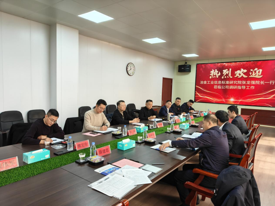 12月10日,冶金工业信息标准研究院(以下简称:信息标准院)党委书记、院长张龙强及相关专业人员赴鲁丽集团有限公司(以下简称:鲁丽集团),与党委书记薛明亮,党委副书记、冶金板块董事长傅士刚,总经理郭栋,副总经理马清文、魏文升,山东磐金钢管制造有限公司总经理助理国伟军,寿光懋隆新材料技术开发有限公司技术科科长刘凯等就企业高质量发展等议题进行座谈交流。