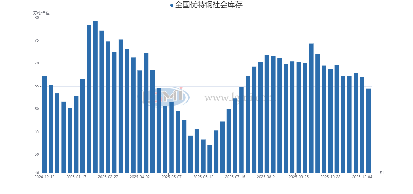 全国优特钢社会库存(12.5-12.11)