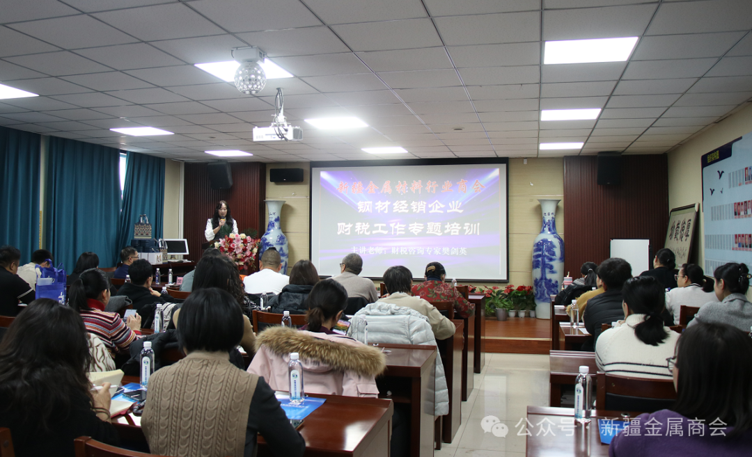 为提升会员企业负责人及核心管理层的税务战略思维、风险识别能力与合规筹划意识,帮助企业有效应对税收检查、规避经营中的税务风险,12月16日,新疆金属材料行业商会在商会二楼会议室举办了钢材经销企业财税工作专题培训。