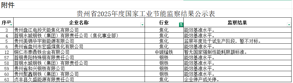 根据《中华人民共和国节约能源法》和《工业节能监察办法》等要求,现将贵州省2025年度国家工业节能监察结果予以公示,如有异议,请于公示期内,书面反馈至贵州省工业和信息化厅节能与综合利用处。