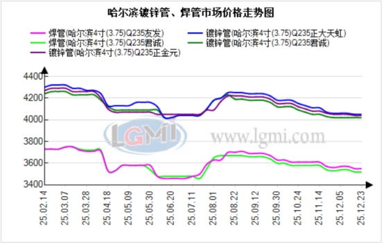 - 快讯:12月23日哈尔滨镀锌管、焊管市场价格稳2025/12/23