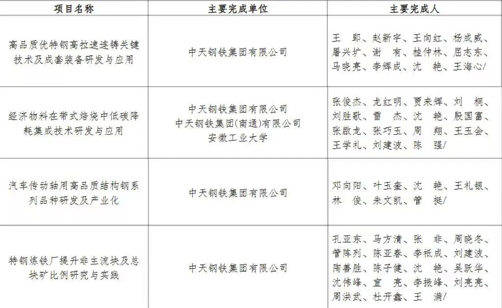 同期公布的科技人才奖名单中,中天特钢公司金锋、谭志东分别荣获创新人才奖与青年人才奖。