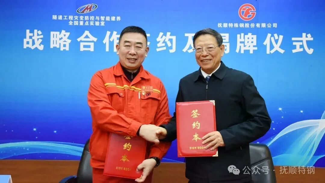 此次签约、授牌仪式标志着抚顺特钢与隧道全重实验室的合作迈出了重要一步。今后,双方将汇聚创新人才与优势资源,积极推进原创性、引领性技术的工程应用研究和成果转化推广。同时,依托隧道全重实验室和抚顺特钢研发平台,提升双方融通创新能力,研发出一系列高品质特殊钢新材料和高附加值产品,提升双方核心竞争力和行业影响力,并实现规划目标。