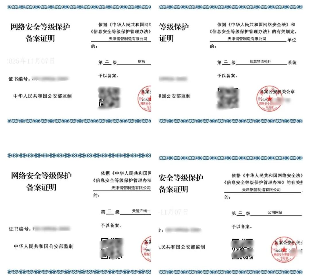 - 天津钢管多系统顺利通过“等保二级”测评2025/12/29