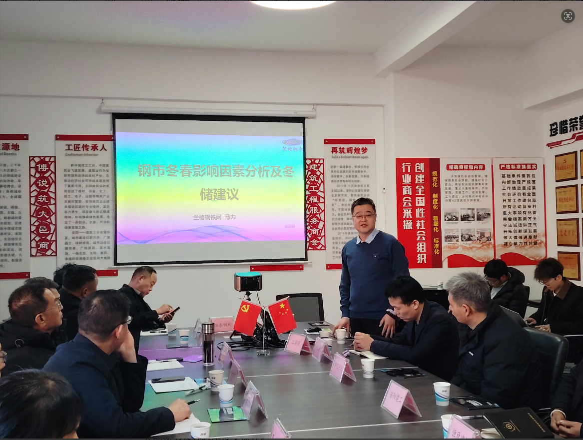 协会战略合作伙伴兰格钢铁网总经理马力,专程从北京赶来参加此次会议,在会上做了“钢市冬春影响因素分析及冬储建议”的报告,回顾了国内钢铁市场的运行规律,对供给端、库存端、需求端的各自特点进行了深入分析,并对今后一段时期的钢材价格趋势做了预测。与会人员听了,对当前的钢材市场走势有了更清晰的认识,有助于公司的原材料采购策略制定。