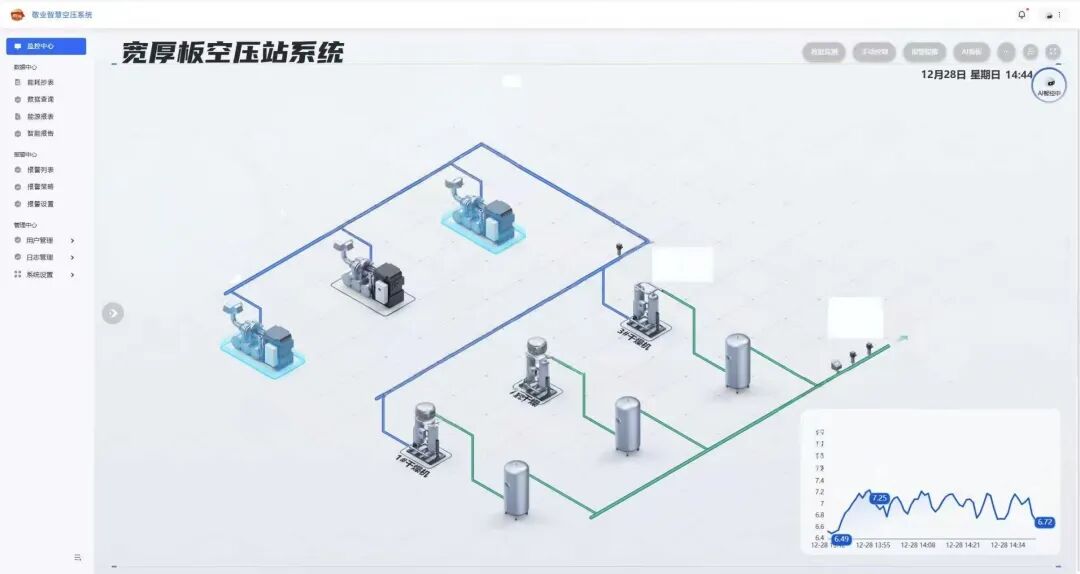 近日,由敬业集团智能信息部与能源环保部联合研发的智慧空压系统成功投运。该系统通过为传统空压系统加装“智慧大脑”,实现供气与用气需求的动态精准匹配,在保障生产稳定供气的同时,大幅降低能源消耗,为集团绿色低碳转型再添新动能。
