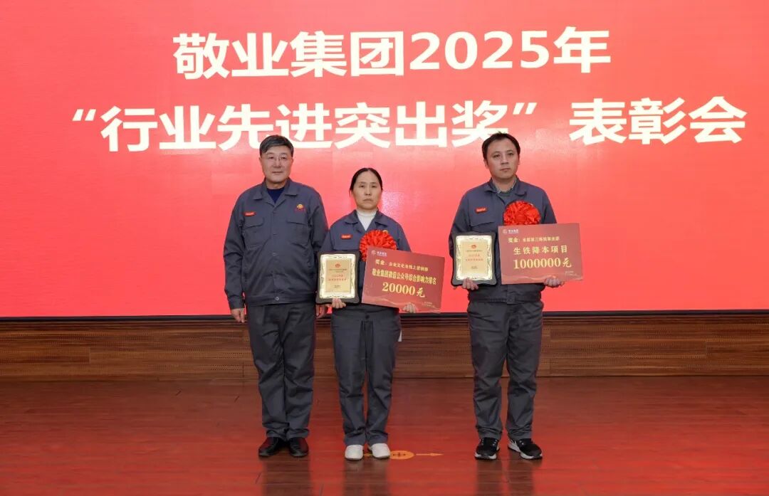 提为科级待遇及金质勋章获奖人员随后,大会对2025年度“行业先进突出奖”获奖单位进行表彰。“第三炼铁事业部生铁降本成效显著”“超厚和高强风电钢突破技术瓶颈,处于行业领先”“基于智能感知技术的板坯结晶器漏钢预警系统研发及应用”“敬业集团微信公众号综合影响力排名优异”4个优秀项目分别斩获“生铁降本领航奖”“技术创新突出奖”“品牌宣传突出奖”。
