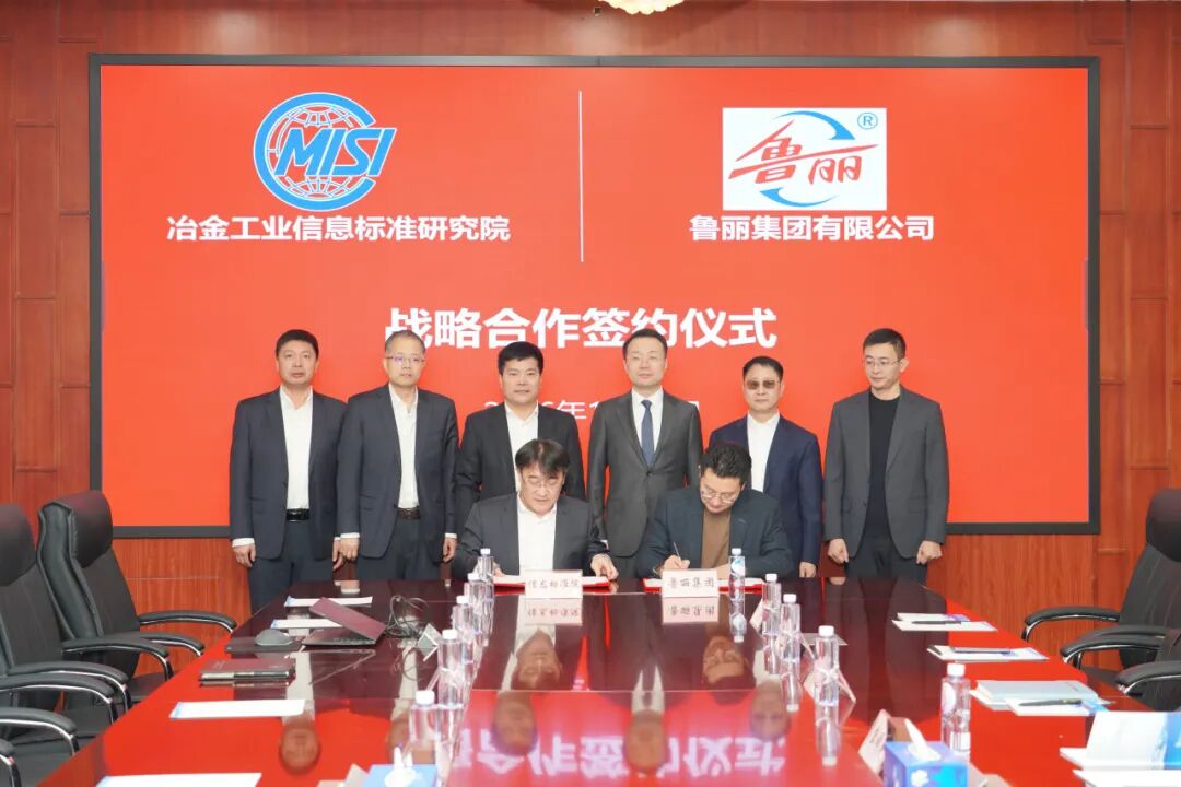 1月20日,冶金工业信息标准研究院(以下简称:信息标准院)与鲁丽集团有限公司(以下简称:鲁丽集团)开展业务交流并签署战略合作协议。鲁丽集团党委书记薛明亮,冶金板块总经理郭栋,冶金板块副总经理马清文,冶金板块副总经理魏文升;信息标准院党委书记、院长张龙强,副院长赵辉和相关部门负责人及专业人员出席签约仪式。