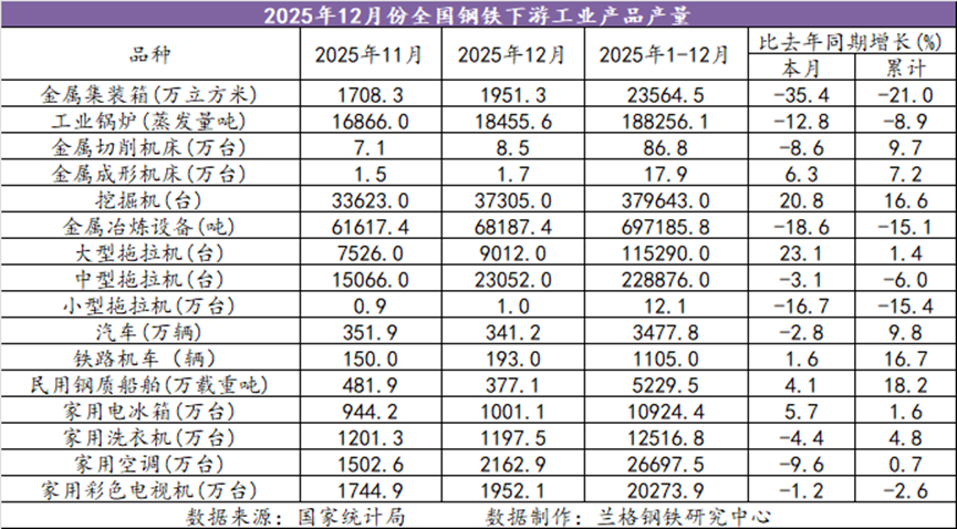 兰格追踪:2025年1-12月全国钢铁下游工业产品产量