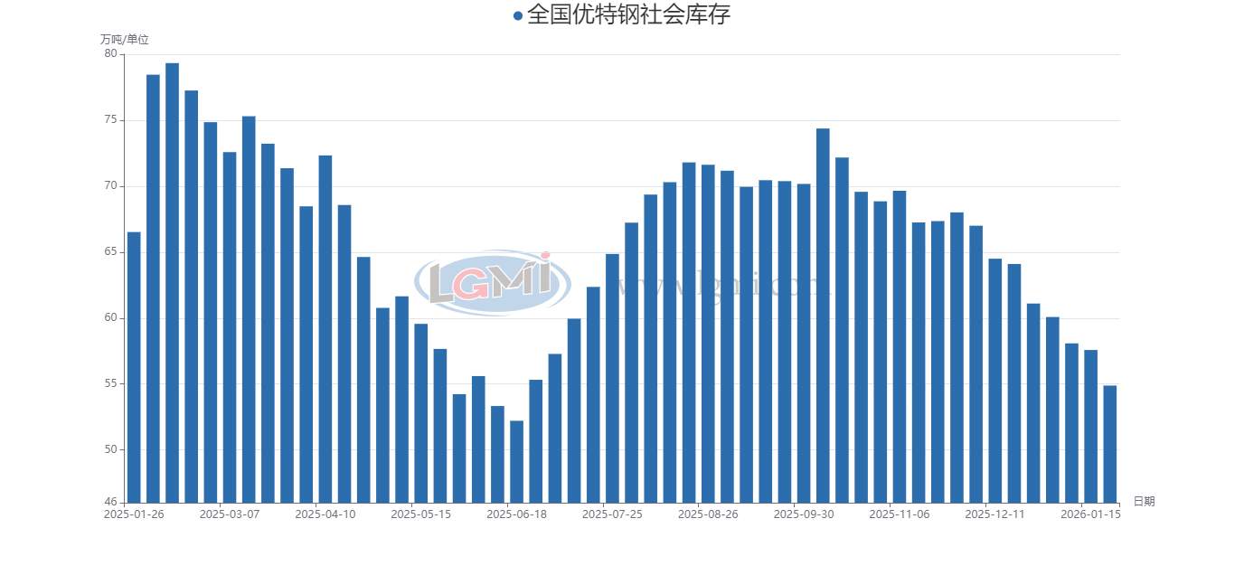 全国优特钢社会库存(1.16-1.22)