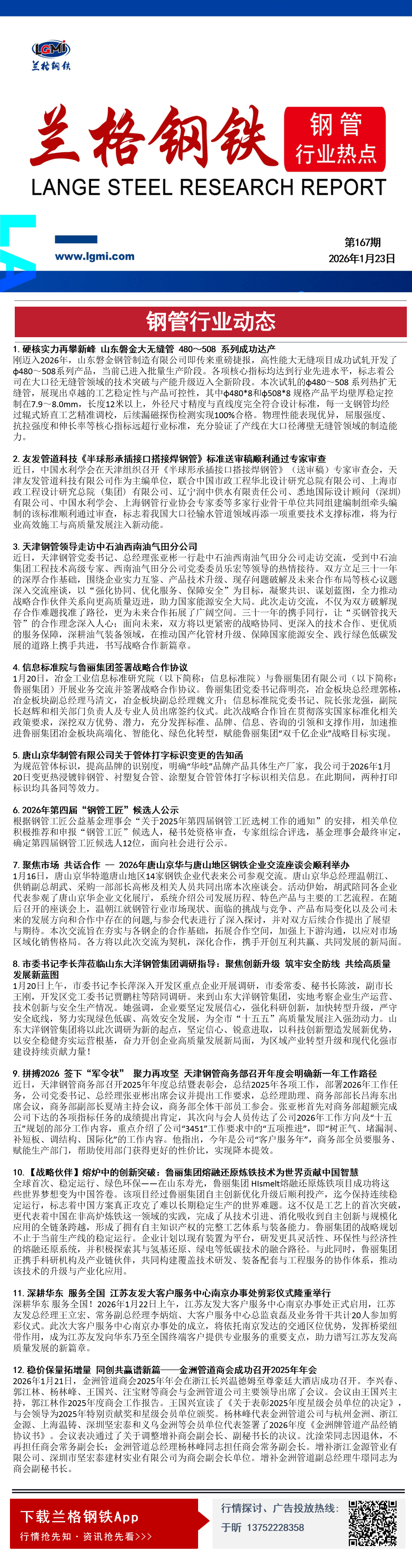 发表日期:2026/1/23 17:33:07 兰格钢铁