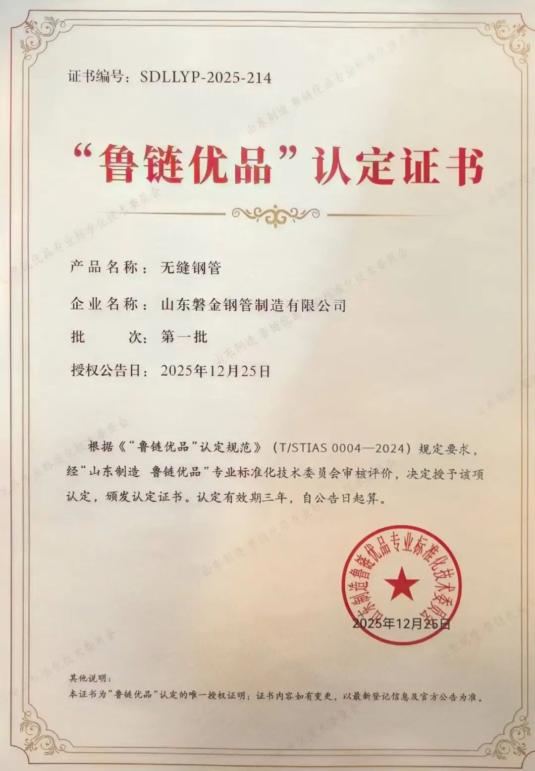 - 喜报|山东磐金钢管制造有限公司产品入选 “山东制造 鲁链优品”2026/1/28